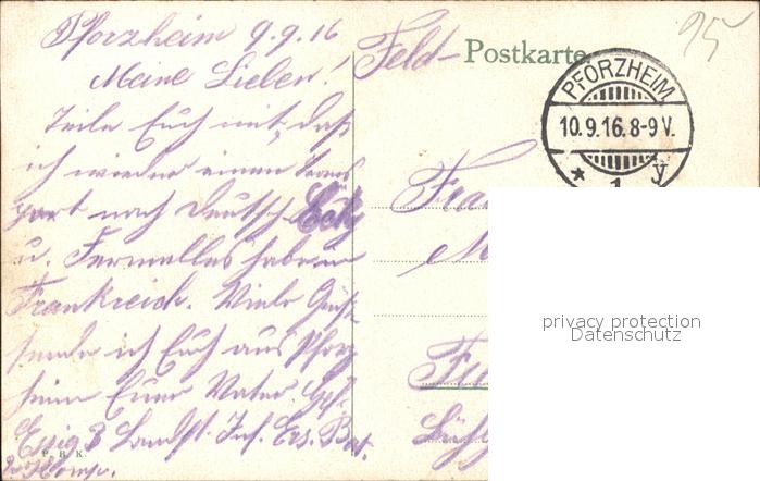 31714134 alte Postkarte Pforzheim postalisch gelaufen Feldpost Erhaltung siehe scans KatCode: 11110008231000