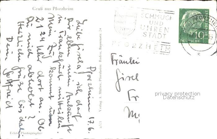 72582767 alte Postkarte Pforzheim postalisch gelaufen Erhaltung siehe scans [LiesaD40] KatCode: 11110008231000