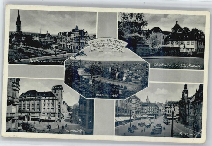 40715593 Pforzheim Auerbrücke Schloss Kirche Leopoldplatz KatCode 11110008231000