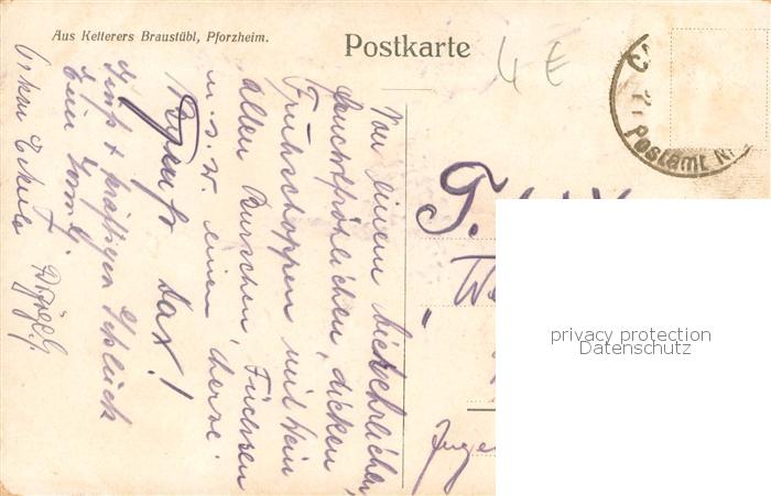 73771799 alte Postkarte Pforzheim Aus Ketterers Braustuebl postalisch gelaufen Erhaltung siehe scans [WerneD78] KatCode: 11110008231000