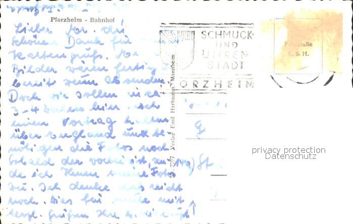 32193517 alte Postkarte Pforzheim Bahnhof postalisch gelaufen Erhaltung siehe scans KatCode: 11110008231000
