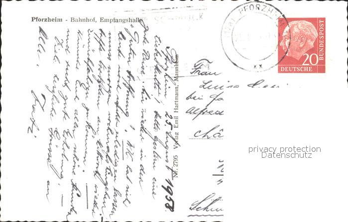 41992814 alte Postkarte Pforzheim Bahnhof Empfangshalle postalisch gelaufen Erhaltung siehe scans KatCode: 11110008231000