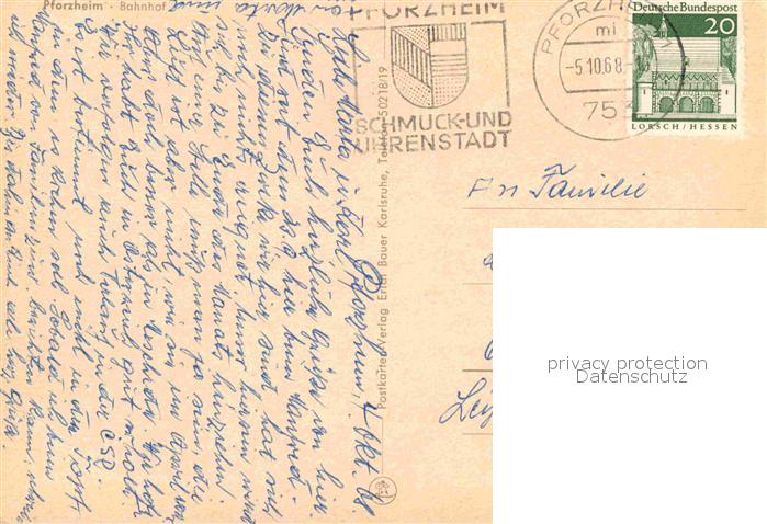 72687155 alte Postkarte Pforzheim Bahnhof postalisch gelaufen Erhaltung siehe scans [WerneD78] KatCode: 11110008231000
