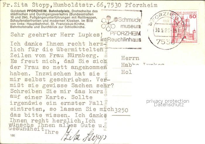 72052871 alte Postkarte Pforzheim Bahnhofplatz Goldstadt postalisch gelaufen KatCode: 11110008231000