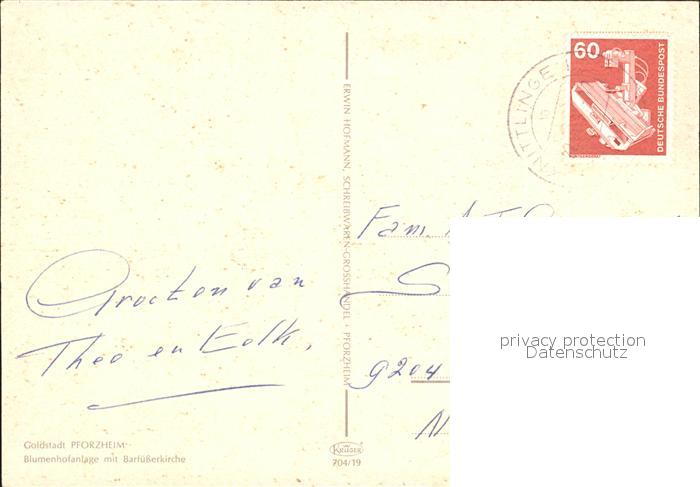 72230364 Pforzheim Blumenhofanlage mit Barfuesserkirche postalisch nicht gelaufen Erhaltung siehe scans KatCode: 11110008231000