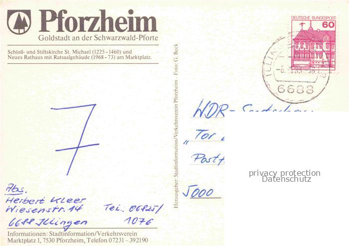 74084473 alte Postkarte PFORZHEIM BW Neues Rathaus mit Ratsaalgebaeude am Marktplatz postalisch gelaufen Erhaltung siehe scans [WerneD78] KatCode: 11110008231000