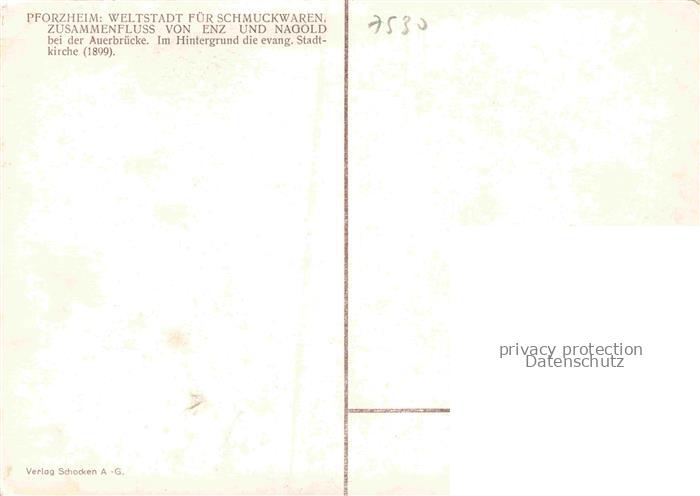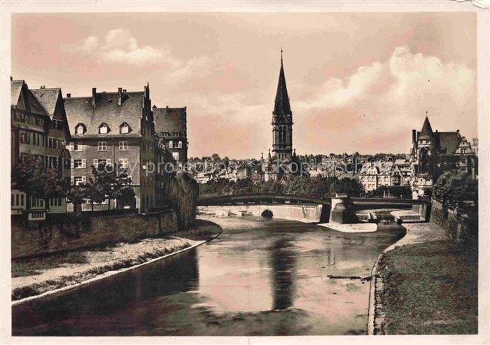 74092060 PFORZHEIM BW Zusammenfluss von Enz und Nagold bei der Auerbruecke Stadtkirche postalisch nicht gelaufen Erhaltung siehe scans [FriedD77] KatCode: 11110008231000