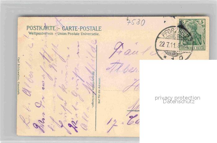 42677871 alte Postkarte Pforzheim Enzstrasse mit Anlagen postalisch gelaufen Erhaltung siehe scans [AndreD76] KatCode: 11110008231000