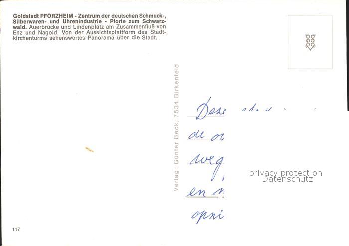 72241623 Pforzheim Goldstadt Auerbruecke Lindenplatz Enz und Nagold postalisch nicht gelaufen Erhaltung siehe scans KatCode: 11110008231000