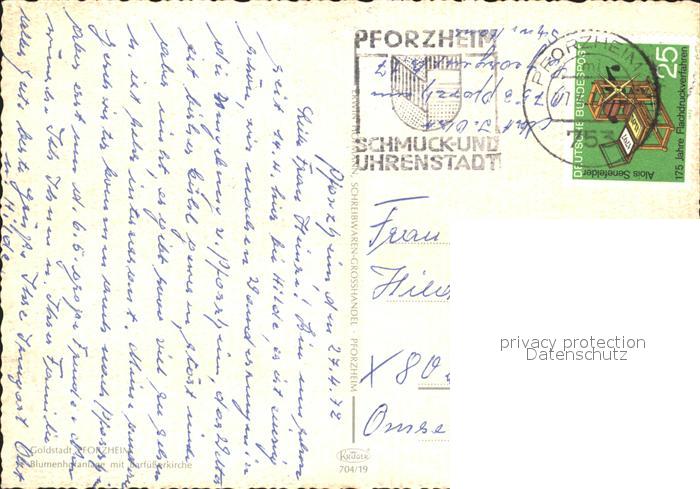 72373543 alte Postkarte Pforzheim Goldstadt Blumenhofanlage Barfuesserkirche postalisch gelaufen Erhaltung siehe scans KatCode: 11110008231000
