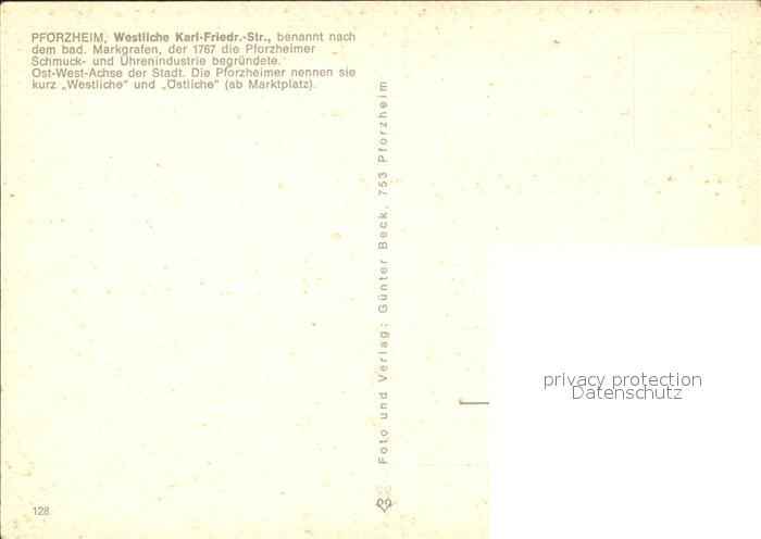 72110915 Pforzheim Karl Friedrich Strasse postalisch nicht gelaufen Erhaltung siehe scans KatCode: 11110008231000