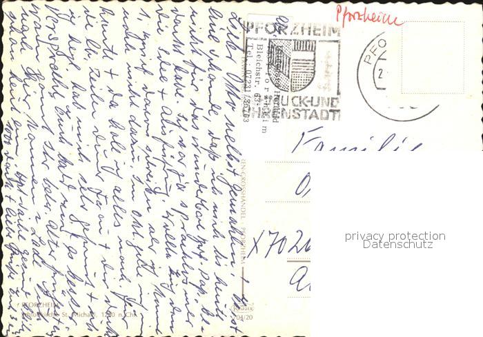 72567052 alte Postkarte Pforzheim Kirchenpartie postalisch gelaufen Erhaltung siehe scans [LiesaD40] KatCode: 11110008231000