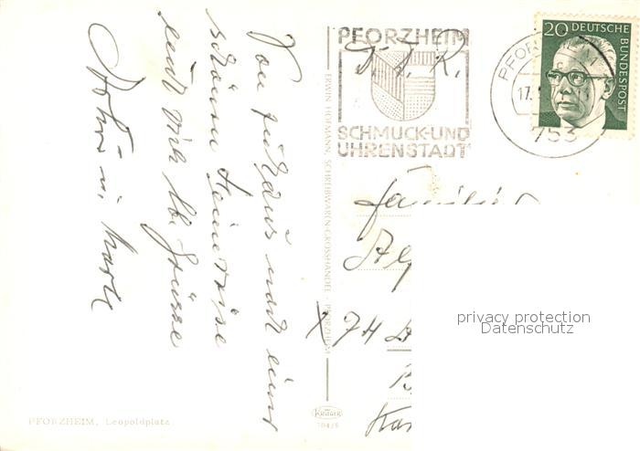 73109041 alte Postkarte Pforzheim Leopoldplatz postalisch gelaufen Erhaltung siehe scans [NatalD47] KatCode: 11110008231000