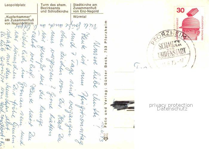72855473 alte Postkarte Pforzheim Leopoldplatz Schlo?kirche W?rmtal Kupferhammer postalisch gelaufen Erhaltung siehe scans [LiesaD40] KatCode: 11110008231000