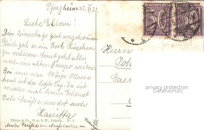 31849825 alte Postkarte Pforzheim Leopoldsplatz postalisch gelaufen Erhaltung siehe scans KatCode: 11110008231000