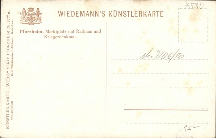 41107624 Pforzheim Marktplatz Rathaus Kriegerdenkmal [Künstlerkarte] KatCode 11110008231000