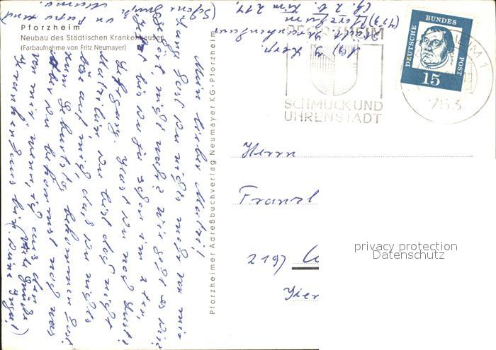 72577676 alte Postkarte Pforzheim Neubau Staedtisches Krankenhaus postalisch gelaufen Erhaltung siehe scans [FriedD77] KatCode: 11110008231000