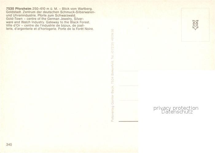 73177250 Pforzheim Panorama Blick vom Wartberg Goldstadt Schmuck Silberwaren Uhrenindustrie Pforte zum Schwarzwald postalisch nicht gelaufen Erhaltung siehe scans [FriedD77] KatCode: 11110008231000