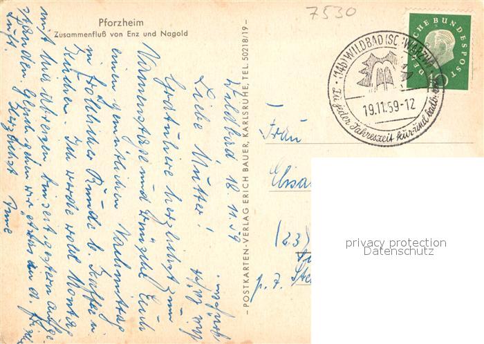 73021652 alte Postkarte Pforzheim Panorama Zusammenfluss von Enz und Nagold postalisch gelaufen Erhaltung siehe scans [WerneD78] KatCode: 11110008231000