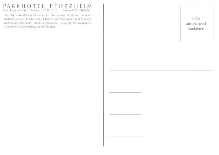 73908404 Pforzheim Parkhotel Pforzheim postalisch nicht gelaufen Erhaltung siehe scans [WerneD78] KatCode: 11110008231000