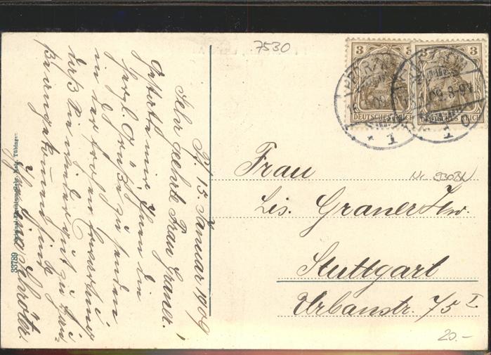 41326992 alte Postkarte Pforzheim Partie an unteren Au Bruecke Kirche Turm postalisch gelaufen gute Erhaltung KatCode: 11110008231000