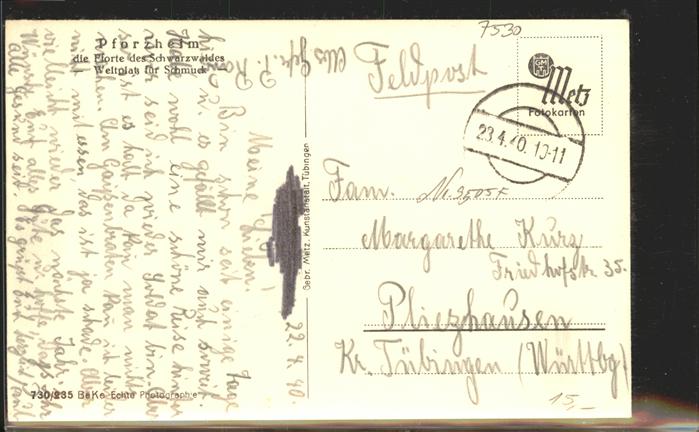 Pforzheim Partie mit Hindenburgstrasse Feldpost