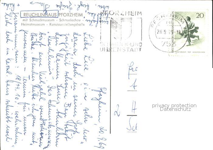 72435420 alte Postkarte Pforzheim Reuchlinhaus Schmuckmuseum postalisch gelaufen Erhaltung siehe scans KatCode: 11110008231000