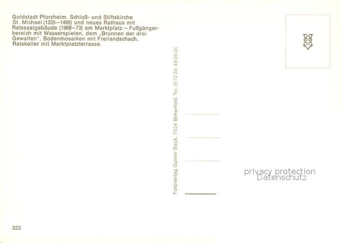 73732622 Pforzheim Schloss- und Stiftskirche St. Michael Rathaus Ratssaalgebaeude Marktplatz Fussgaengerzone Wasserspiele postalisch nicht gelaufen Erhaltung siehe scans [FriedD77] KatCode: 11110008231000