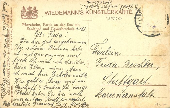 41107543 Pforzheim Stadtbad Gewerbeschule Künstlerkarte KatCode 11110008231000