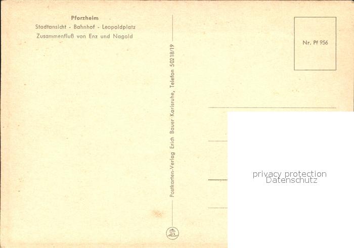 72528145 Pforzheim Stadtblick Bahnhof Leopoldplatz Zusammenfluss von Enz und Nagold postalisch nicht gelaufen Erhaltung siehe scans KatCode: 11110008231000