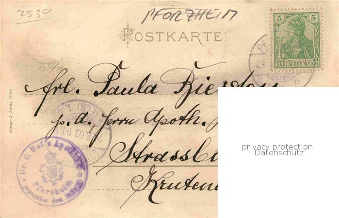 42689965 alte Postkarte Pforzheim Stadtgarten postalisch gelaufen Erhaltung siehe scans [LiesaD40] KatCode: 11110008231000