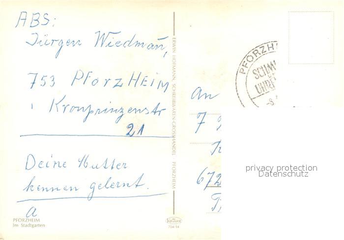 72934702 alte Postkarte Pforzheim Stadtgarten Springbrunnen postalisch gelaufen Erhaltung siehe scans [FriedD77] KatCode: 11110008231000