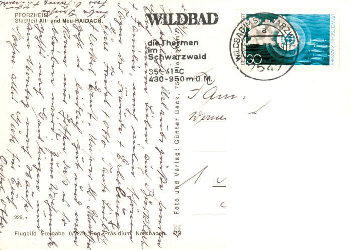 73902942 alte Postkarte Pforzheim Stadtteil Alt und Neuhaidach Fliegeraufnahme postalisch gelaufen Erhaltung siehe scans [WerneD78] KatCode: 11110008231000