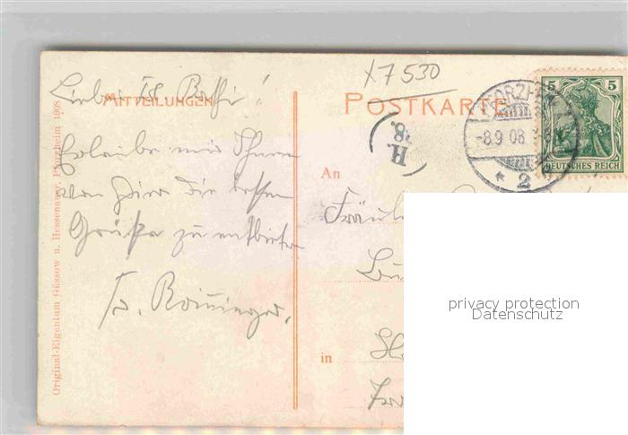 42655299 alte Postkarte Pforzheim Villa Ehrismann an der Altstadtkirche postalisch gelaufen Erhaltung siehe scans [FriedD77] KatCode: 11110008231000