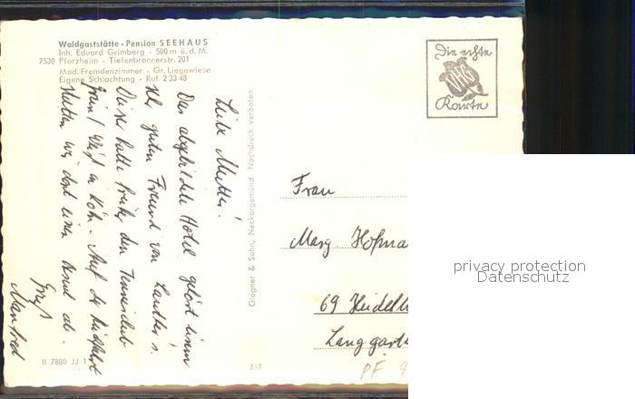 41976917 Pforzheim Waldgaststaette Pension Seehaus postalisch nicht gelaufen Erhaltung siehe scans KatCode: 11110008231000