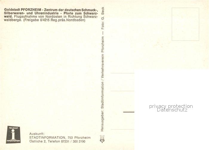 73323015 Pforzheim Zentrum der deutschen Schmuck- und Uhrenindustrie Pforte zum Schwarzwald Fliegeraufnahme postalisch nicht gelaufen Erhaltung siehe scans [FriedD77] KatCode: 11110008231000