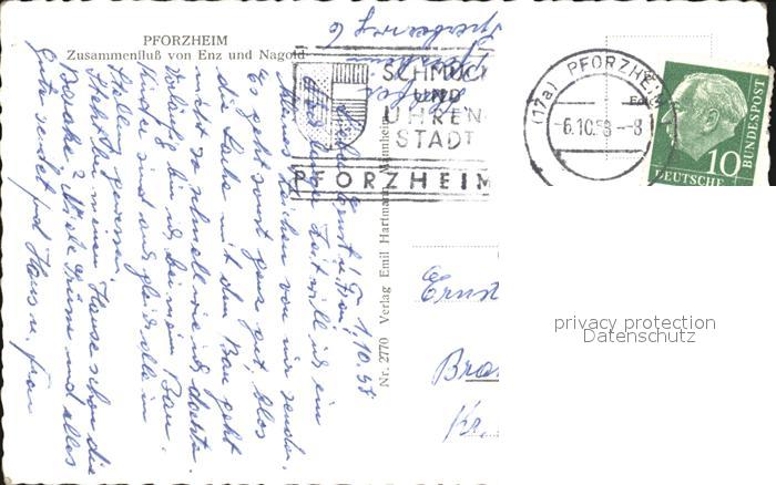 72419427 alte Postkarte Pforzheim Zusammenfluss von Enz und Nagold Dom postalisch gelaufen Erhaltung siehe scans KatCode: 11110008231000