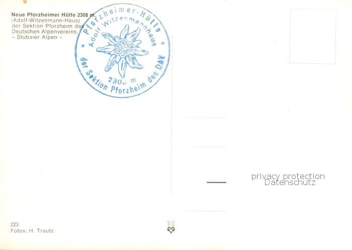 73790825 Pforzheimerhuette Sellrain Tirol AT Adolf Witzenmann Haus Berghaus Stubaier Alpen postalisch nicht gelaufen Erhaltung siehe scans [FriedD77] KatCode: 11390332070352
