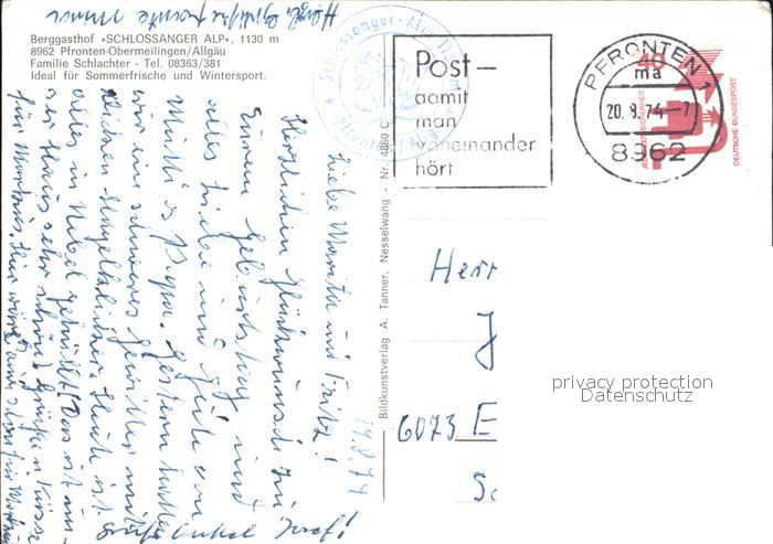alte Postkarte Pfronten Berggasthof Schlossanger Alp postalisch gelaufen Erhaltung siehe scans