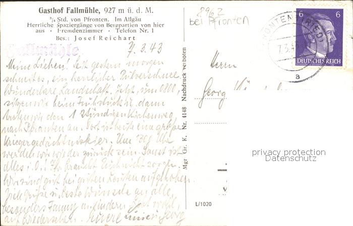 31840676 alte Postkarte Pfronten Gasthaus Fallmuehle Josef Reichart postalisch gelaufen KatCode: 11110009777159