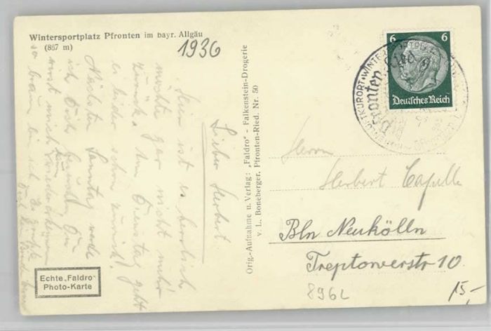 40246520 Pfronten Ostallgaeu Bayern postalisch gelaufen Alte Ansichtskarte Postkarte alte Postkarte Katcode 11110009777159