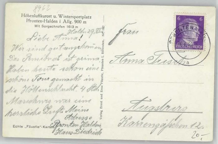 40246488 Pfronten Ostallgaeu Bayern postalisch gelaufen Alte Ansichtskarte Postkarte alte Postkarte Katcode 11110009777159