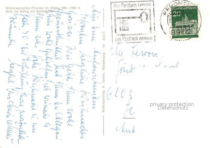 73152216 alte Postkarte Pfronten Ostallgaeu Bayern Achtal Winterlandschaft postalisch gelaufen Erhaltung siehe scans [KathaD81] KatCode: 11110009777159