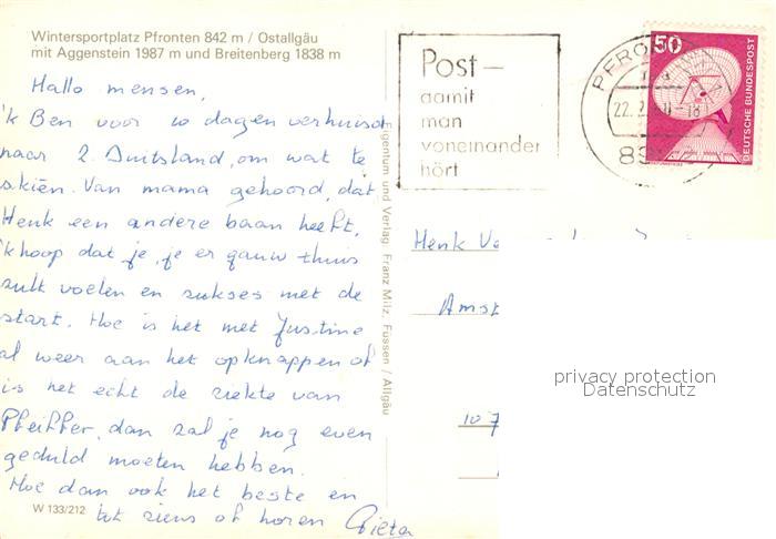 73311324 alte Postkarte Pfronten Ostallgaeu Bayern Aggenstein Breitenberg Winter postalisch gelaufen Erhaltung siehe scans [KathaD81] KatCode: 11110009777159