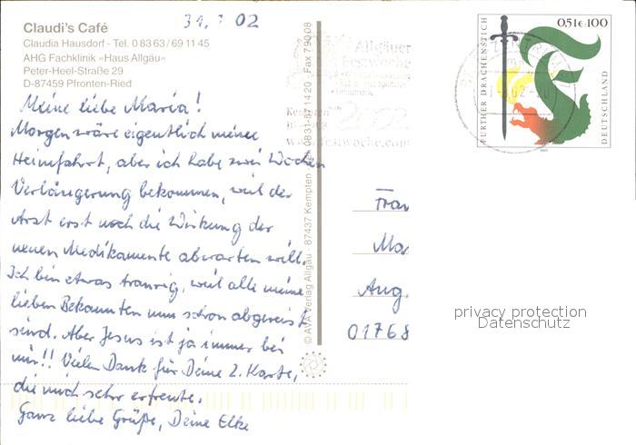 71909139 alte Postkarte Pfronten Ostallgaeu Bayern AHG Fachklinik Haus Allgaeu postalisch gelaufen Erhaltung siehe scans KatCode: 11110009777159
