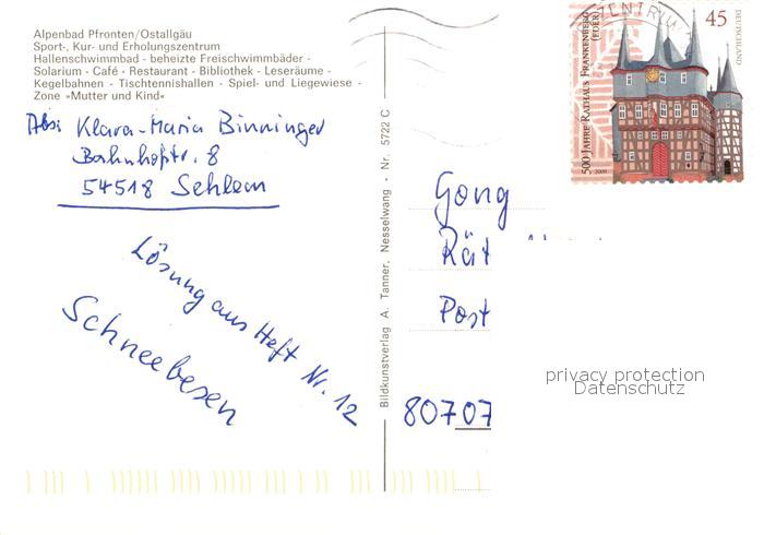 72946870 alte Postkarte Pfronten Ostallgaeu Bayern Alpenbad postalisch gelaufen Erhaltung siehe scans [KathaD81] KatCode: 11110009777159