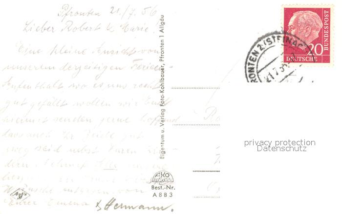 73301153 alte Postkarte Pfronten Ostallgaeu Bayern Baerenmoosalpe Fichtlhuette Ostlerhuette Schlossangeralp postalisch gelaufen Erhaltung siehe scans [PaolaD17] KatCode: 11110009777159