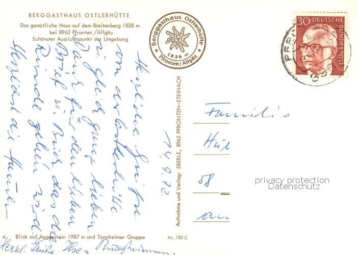 73776064 Pfronten Ostallgaeu Bayern Berggasthaus Osterhuette mit Aggenstein und Tannheimer Gruppe postalisch gelaufen Erhaltung siehe scans [WerneD78] alte Postkarte Wern Katcode 11110009777159