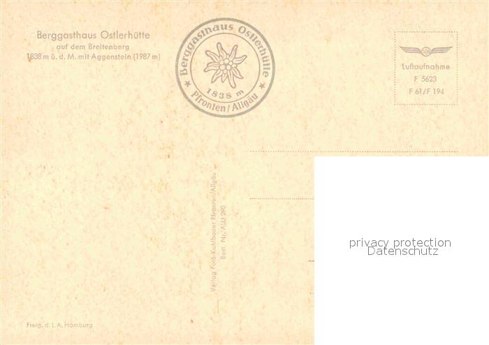 72716831 Pfronten Ostallgaeu Bayern Berggasthaus Ostlerhuette Breitenberg Aggenstein Alpenpanorama postalisch nicht gelaufen Erhaltung siehe scans [FriedD77] KatCode: 11110009777159