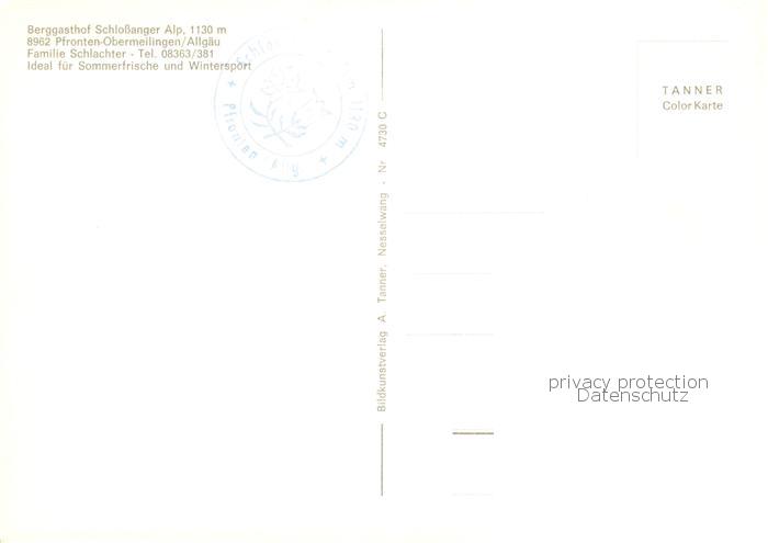 73847447 Pfronten Ostallgaeu Bayern Berggasthof Schlossanger Alp Restaurant postalisch nicht gelaufen Erhaltung siehe scans [FriedD77] Frie Katcode 11110009777159